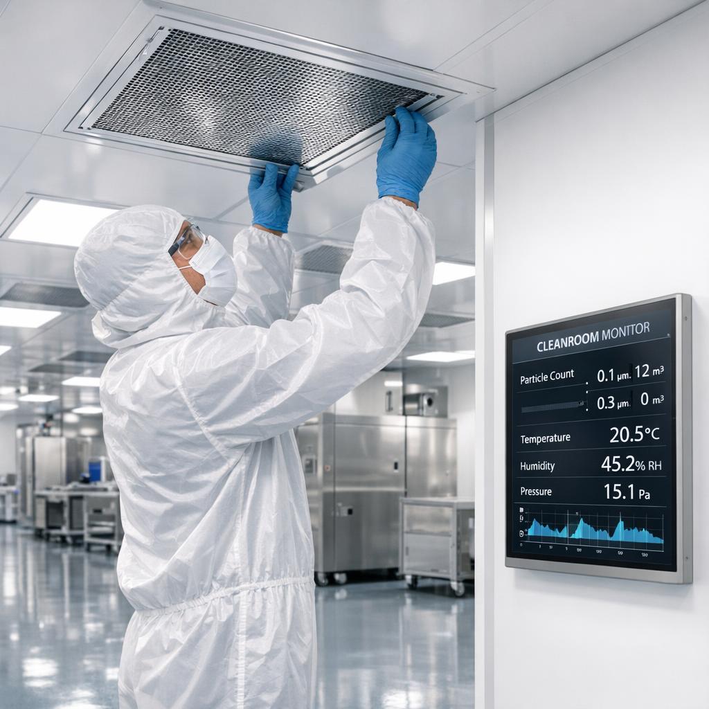 HEPA-Filter entfernen mindestens 99,97 % aller Partikel ab 0,3 Mikrometern und sind damit ein zentraler Bestandteil der Luftreinigung im Reinraum. - Wie wird die Luftqualität im Reinraum überwacht?